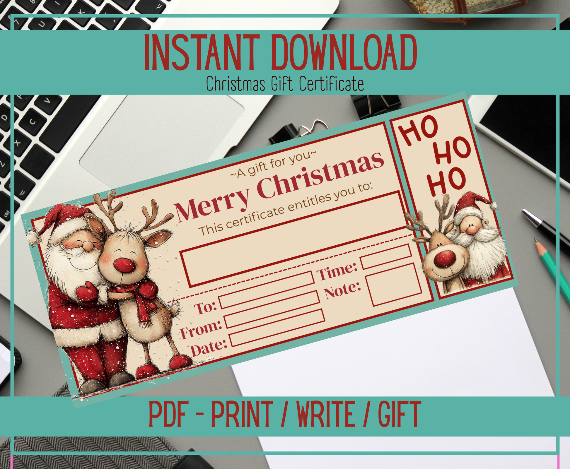 B1 Santa & Reindeer Gift Certificate and Envelope Printable