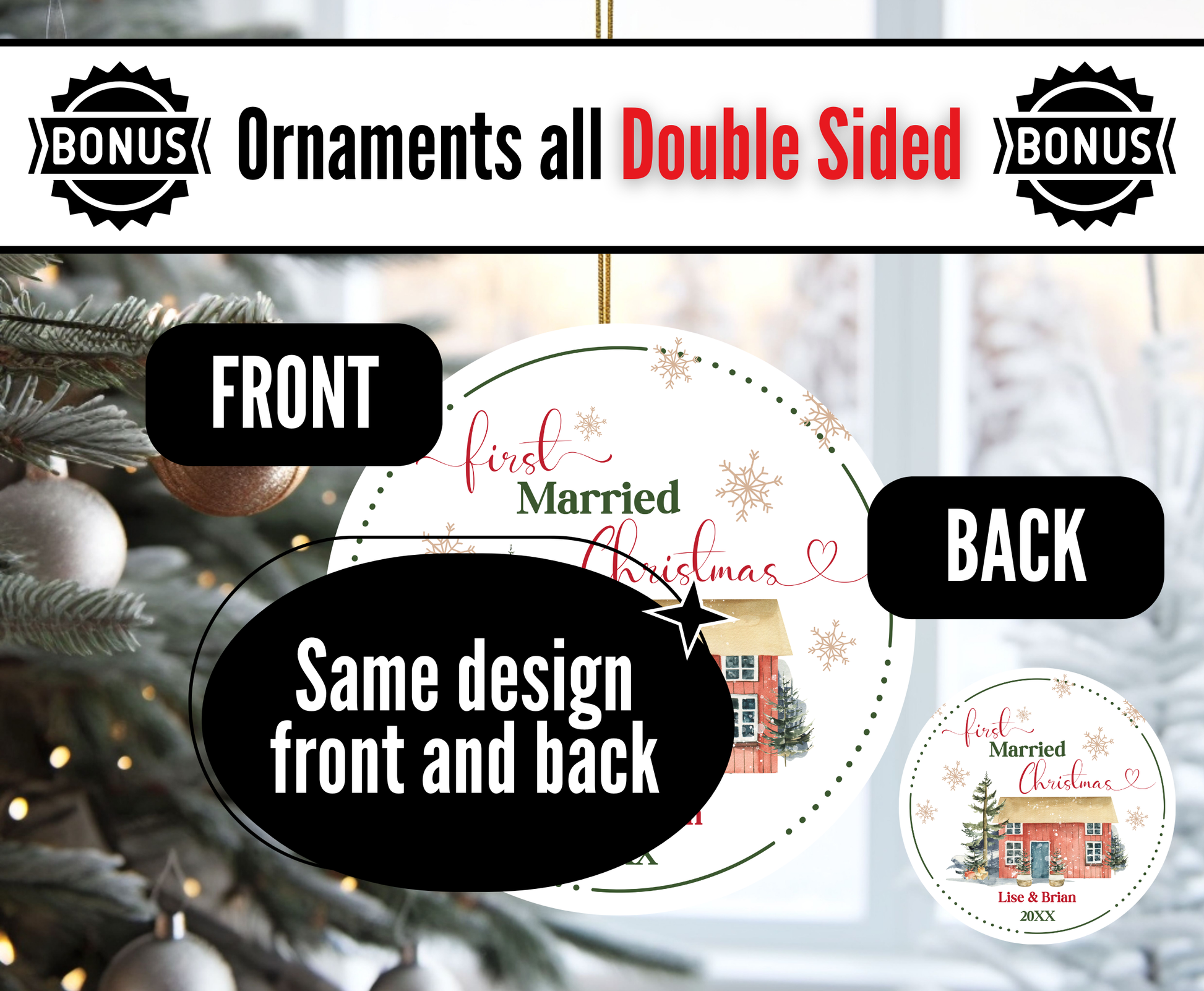 First Married Christmas ornament. Add Names and Year.